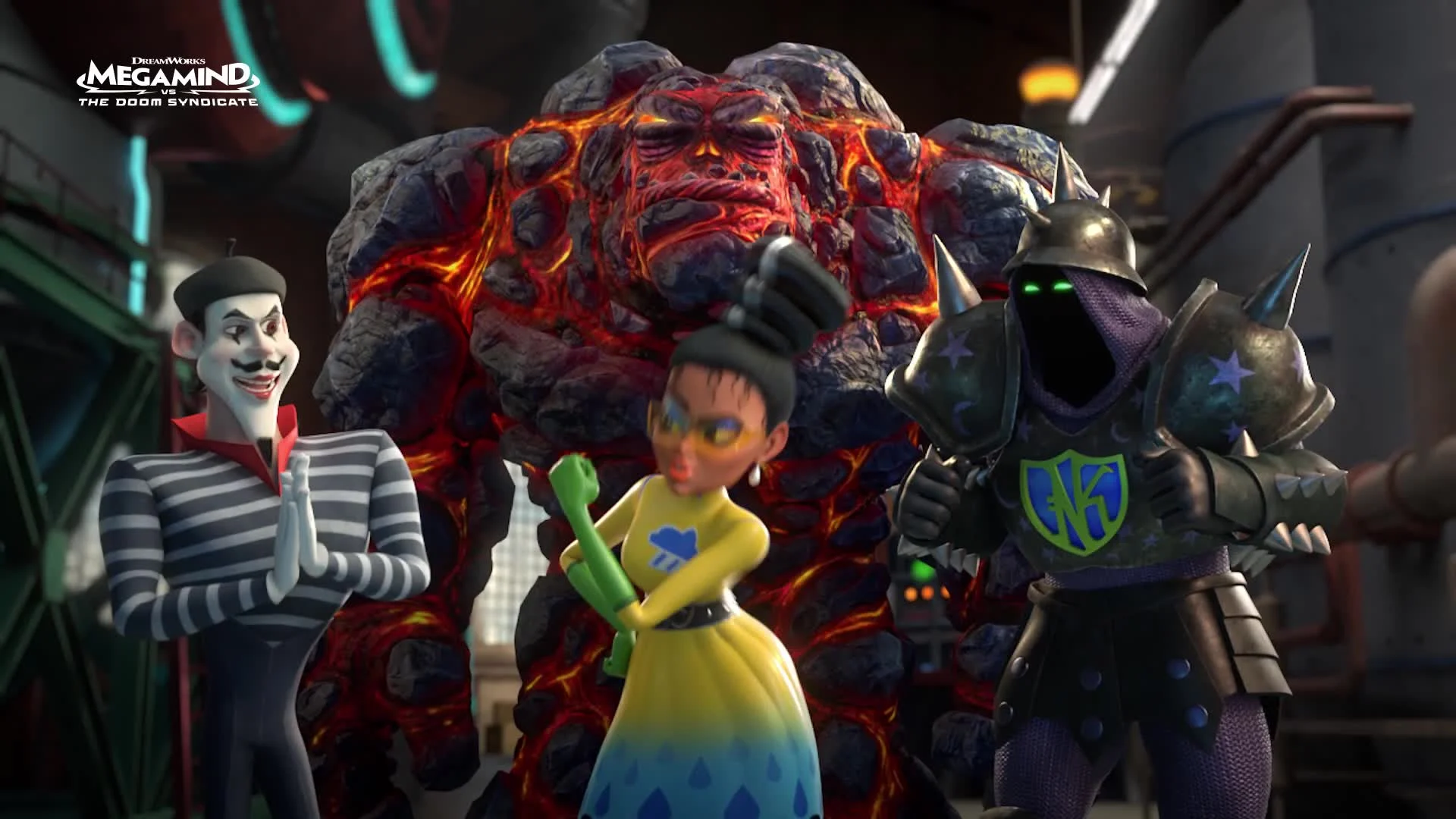 In Megamind vs. the Doom Syndicate, Megamind has transitioned from supervillain to protector of Metro City, earning the key to the city after stopping a fish-themed criminal gang. However, his former allies Lady Doppler, Pierre Pressure, Behemoth, and Lord Nighty-Knight escape prison and form the Doom Syndicate, convinced Megamind’s hero role is part of an evil plot. They challenge him with a plan to launch Metro City into space. Forced to defend the city and his reputation, Megamind recruits his old friends, including media personality Roxanne Ritchi and his loyal sidekick Ol’ Chum, alongside young fan Keiko. Together, they must stop the Syndicate’s dangerous scheme in a mix of comedy and superhero action.
